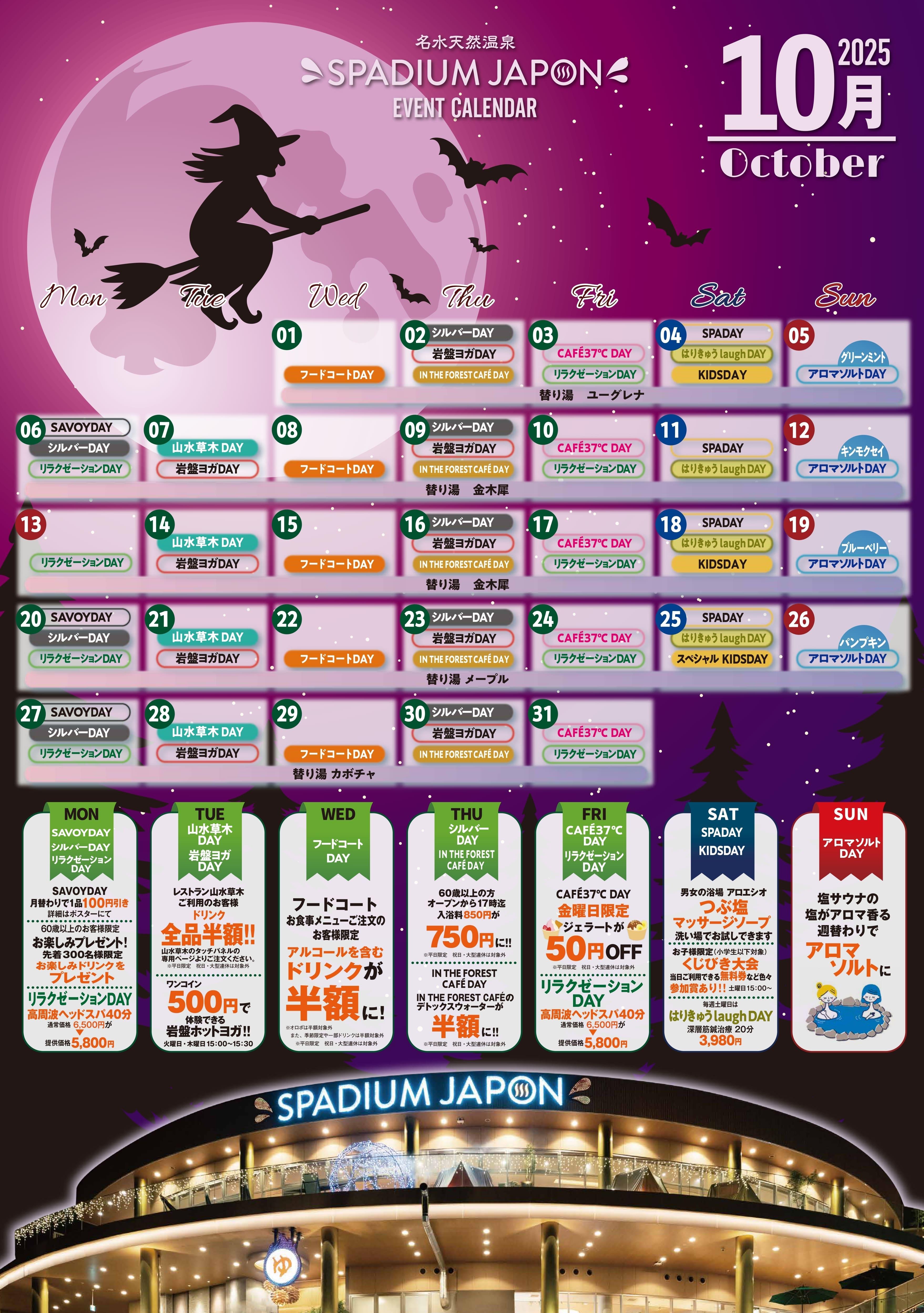 暑い日が多いと予報されている10月ですが、スパジャポで季節を感じるイベントお楽しみください♬
