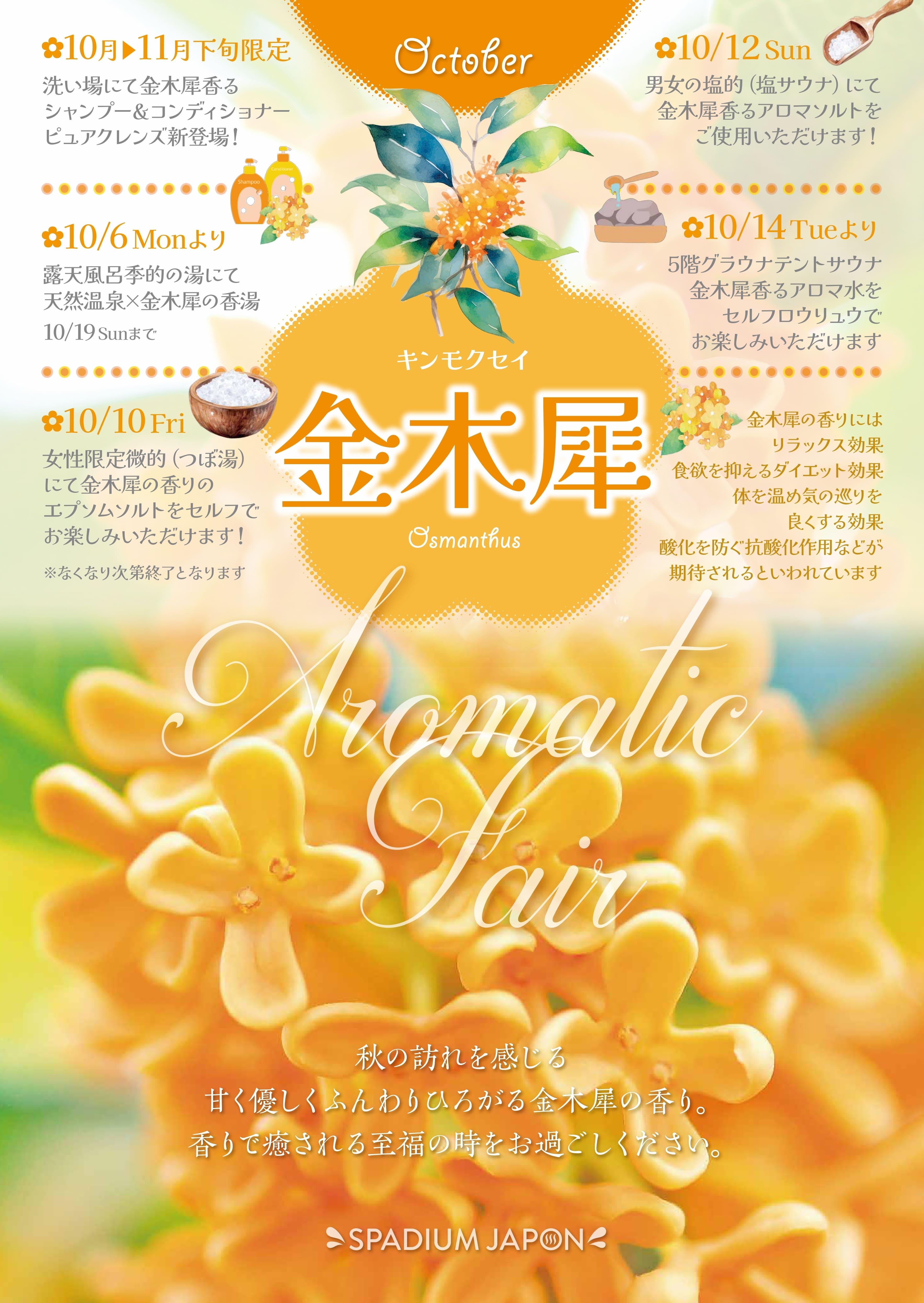 秋の訪れを感じる甘くやさしい金木犀の香り。スパジャポに入店したしたその時から香りで癒される…